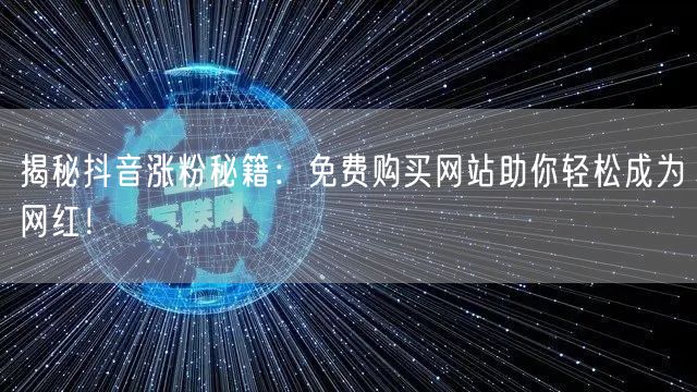 通过本文的介绍,相信你已经掌握了抖音涨粉的关键秘籍。利用免费购买网站,结合有效的粉丝增长策略,相信你能够在抖音平台上轻松成为网红。但是,记住不要过分依赖购买粉丝,要注重内容的质量和与粉丝的互动沟通。只有这样,才能在抖音平台上长久发展,赢得更多观众的喜爱和关注。