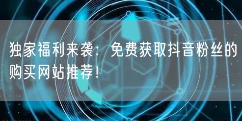 本文为大家带来独家福利!通过推荐的购买网站,你可以享受到免费获取抖音粉丝的特权。这些网站经常会举办各种促销活动,让你轻松获取大量粉丝,快速提升账号影响力。
