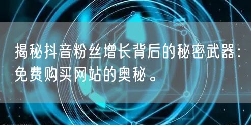 抖音已经成为现代社交媒体中不可或缺的一部分,每个用户都希望自己的账号能够有更多的关注和粉丝。那么,如何快速有效地增加抖音粉丝数量呢?一种秘密武器逐渐浮出水面——免费购买网站。这些网站声称可以帮助用户快速提升粉丝数量,究竟它们是如何运作的呢?本文将为您揭开其中的奥秘。