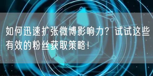 通过以上几种有效的粉丝获取策略,你可以在微博上迅速扩张自己的影响力。但是需要注意的是,扩大影响力的过程需要持续的努力和耐心。只有不断尝试和改进策略,才能在微博上获得更多的成功。希望本文的介绍对你有所帮助!