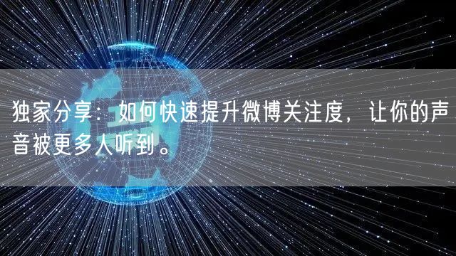 通过以上方法,你可以快速提升微博关注度,让你的声音被更多人听到。在社交媒体时代,拥有一个高关注度的微博账号对于个人品牌建设和信息传播具有重要意义。希望本文的独家分享能对你有所帮助,让你在微博上获得更大的影响力!